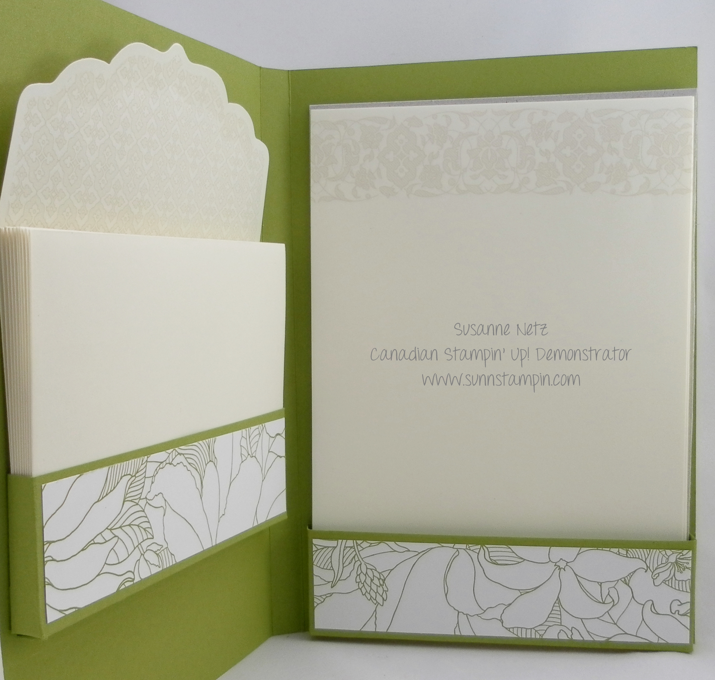 This booklet was specifically made for the “Simply Sentiments English Ivy Stationary Set” that is in the clearance section in the online store. The basic principles will be the same for any stationary set. What a pretty gift for someone who likes to write letters.