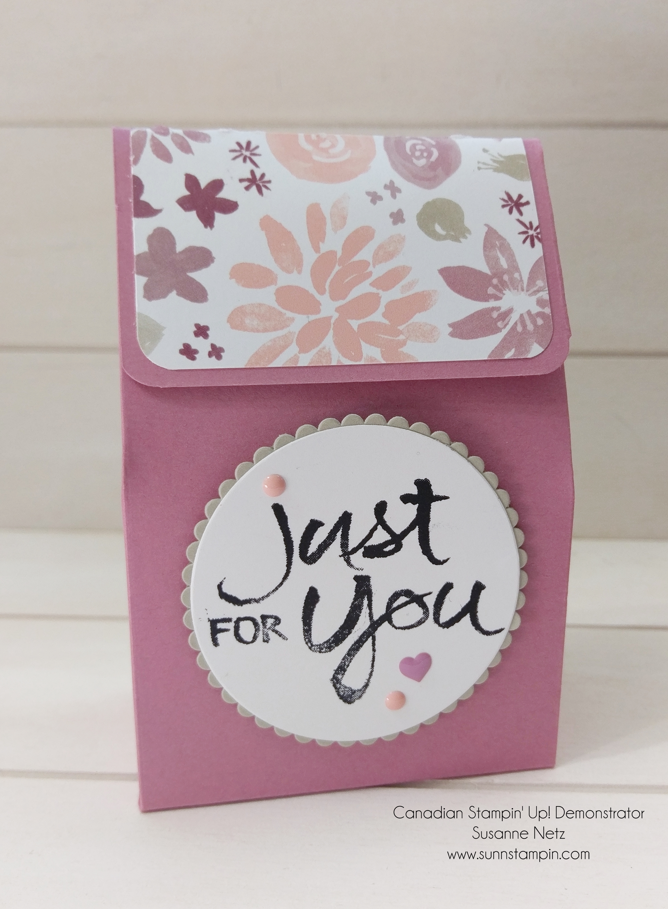 Hello and welcome. Thank you for joining me again for another 3 D how to video. I am excited to share with you today this really nifty little bag box. It is built like a box, sturdy and can hold a lot but closes like a bag with a cute flap. Check it out.