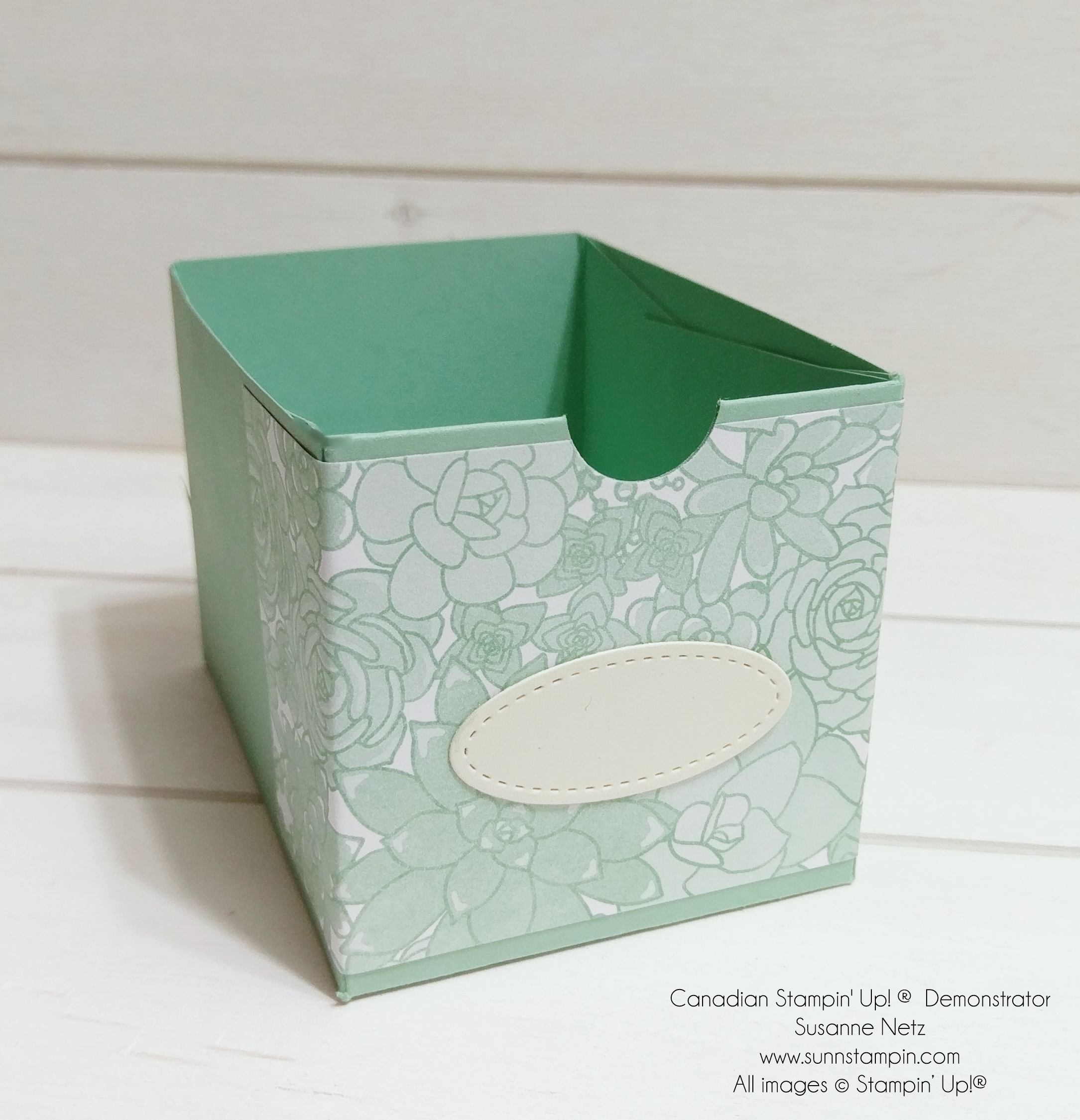 Hello there.  I have been working on a project that I thought you may be interested in.  I thought that maybe you may need something like this in your craft room.  The salon where I work offers clients tea while they visit and our tea caddy was looking a bit tired so I decided to make a new one.  Here’s what one of the boxes looks like.  I made 23 of them and then slipped them into a wooden crate I bought at Michael’s.  I show the full thing in the video.  Check it out.