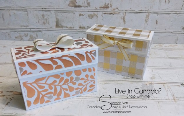 Hi there. TGIF!!! I have a really cute box to share with you today. I am using my amazing new Specialty Designer Series Paper again. I seriously can’t get enough of this stuff. When I was editing the video I thought to myself that for the embellishment (bow) I could have used the new Year of Cheer Washi tape instead of the little strip of foil I used. You will see in the video but I wanted to state it here that there could be an alternative. Have you seen the new washi tapes yet? They are glorious and I highly recommend that you grab some before they retire at the end of December. I know, we all have too much washi tape but seriously…this stuff is beautiful.