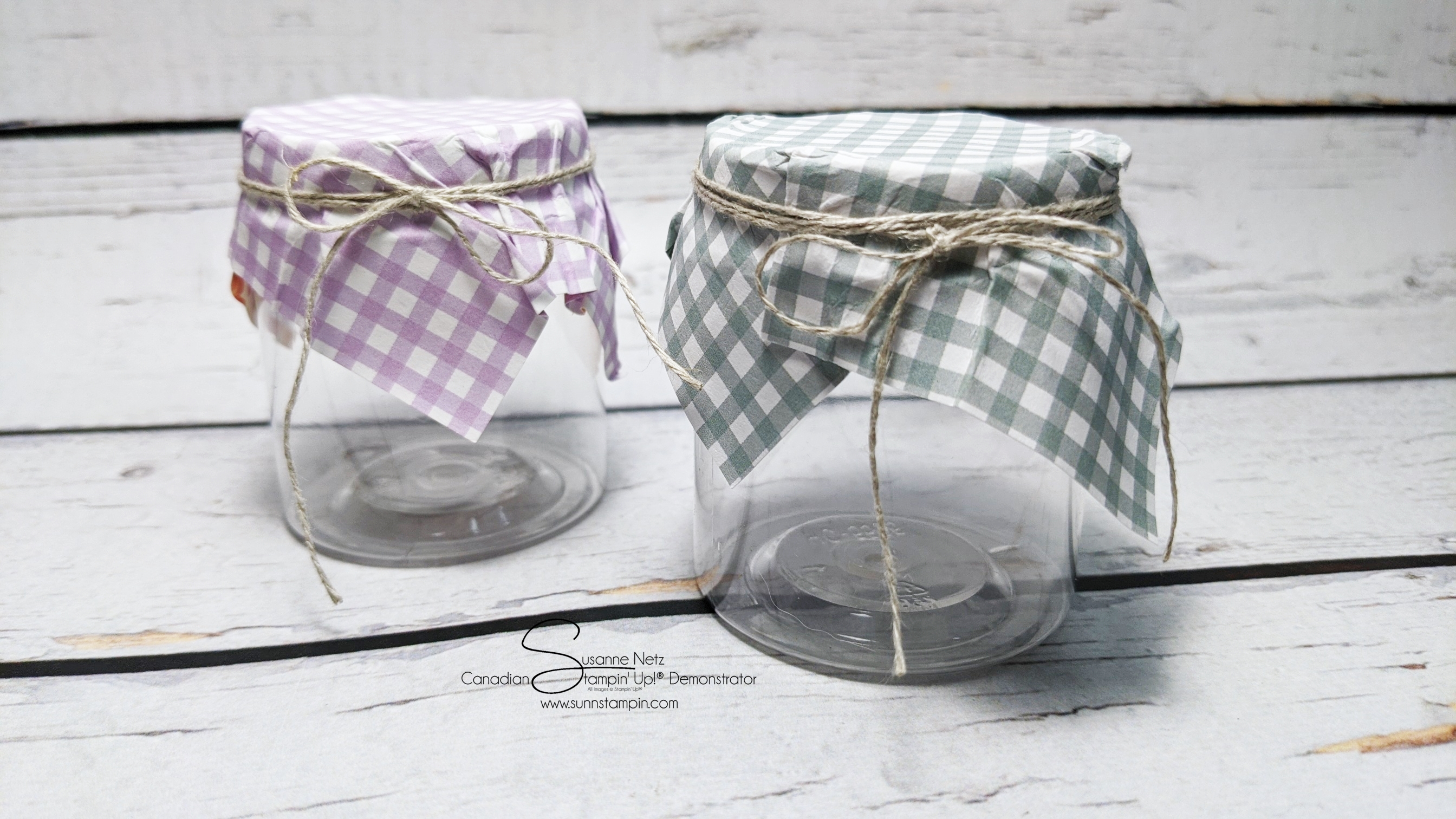 Today’s project is a decorating one, as I have 6 Mini Jam Jars to play with. These cute containers are food safe, but not heat safe. They can be used for dry or wet ingredients but also for fun things like embellishments and crafting supplies!