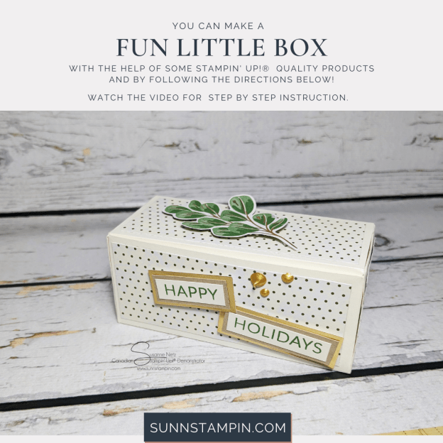 Hello friends. For today’s project was a project that I wanted to share in July but had some filming issues. So, it’s not really Christmas in July but rather a nod to that sort of thing in August. Speaking of Christmas – I was able to preorder some fall and Christmas products because I am special. Do you want to be special too? Join my team and you can get your starter kit full of the new products from the Mini Catalogue.