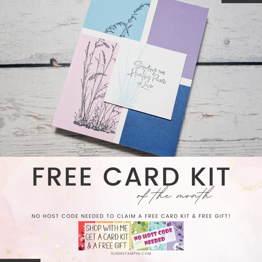 Hello friends. The card kit of the month is a perk for customers who shop with me online at a minimum of $50. Folks will also get a free gift as well. Plus the whole order can be added up and one can earn a free stamp set with me. I have a lot of perks for customers as well as I do for team members. I am so happy to give back. I also want to say, that by shopping with me, you are supporting a Canadian. I appreciate those of you who can see that I am a small Canadian business and rely on my direct sales commissions.
