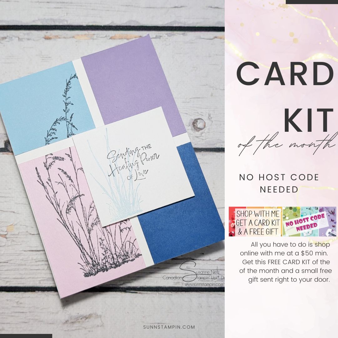 Hello friends. The card kit of the month is a perk for customers who shop with me online at a minimum of $50. Folks will also get a free gift as well. Plus the whole order can be added up and one can earn a free stamp set with me. I have a lot of perks for customers as well as I do for team members. I am so happy to give back. I also want to say, that by shopping with me, you are supporting a Canadian. I appreciate those of you who can see that I am a small Canadian business and rely on my direct sales commissions.