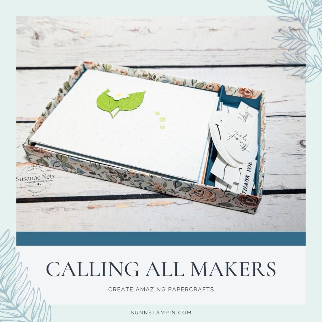 Hello friends. Every new year I share with you a card holder box. Today’s project is similar but it’s more of a gift for a non-cardmaker so they can experience a little what it’s like to create like the rest of us. It holds uncompleted cards, with pre-made sentiments that can be attached at the time of use. Watch the video and check it out.