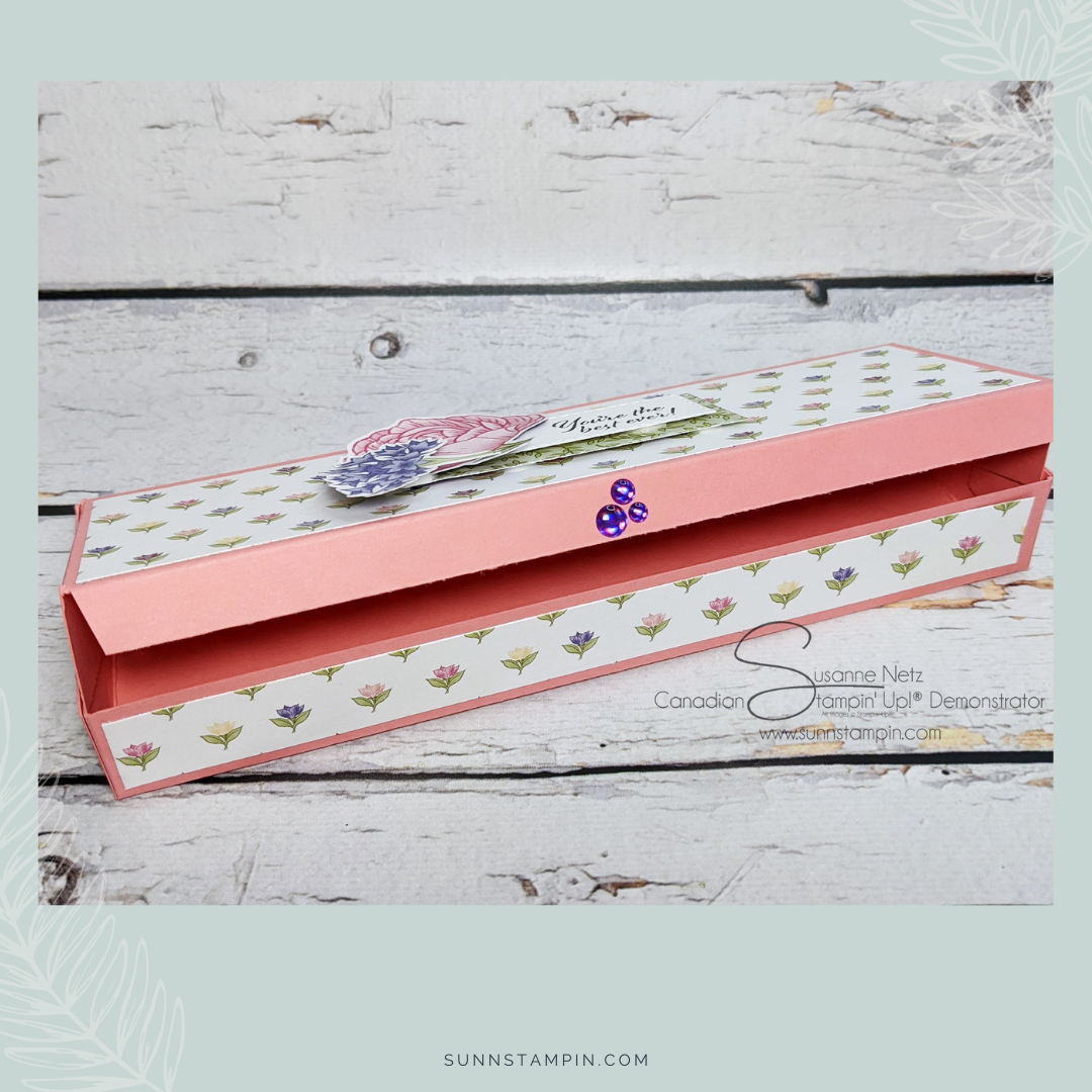 - For the Top 1 pcs of patterned paper sized at 2-1/4″ tall x 6-1/4″ wide