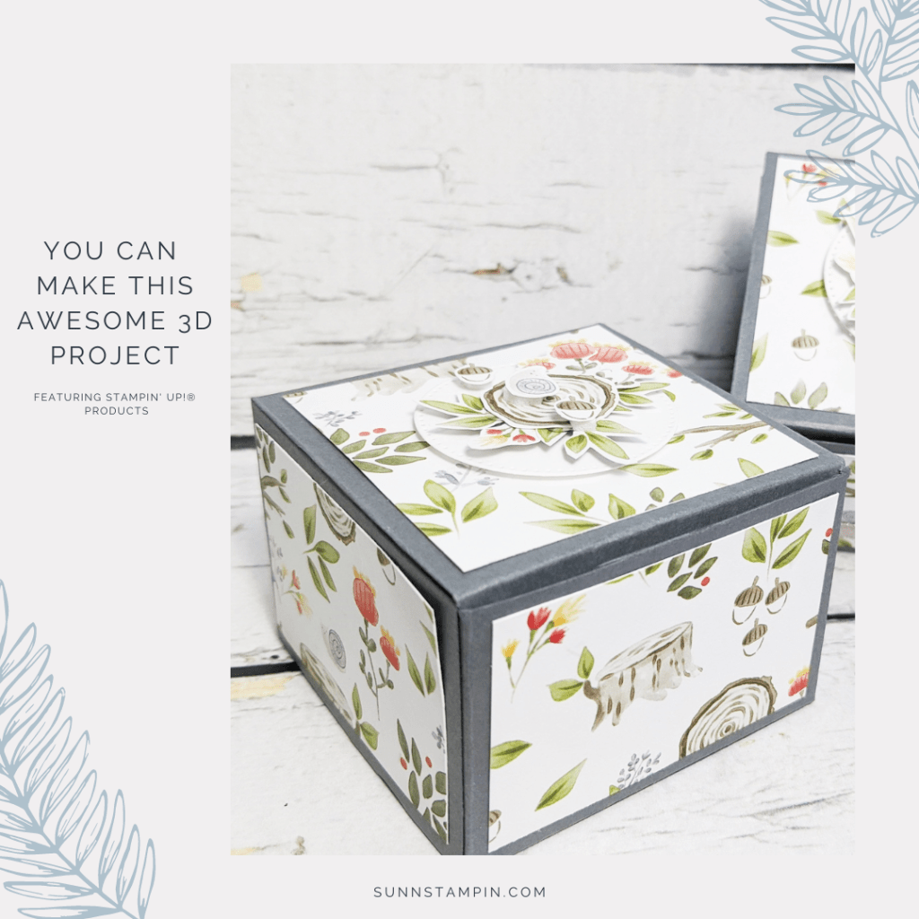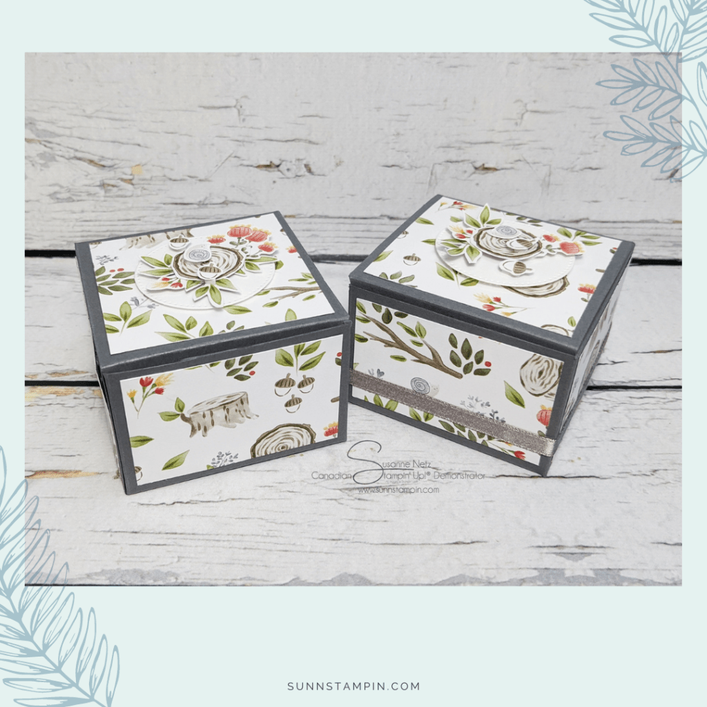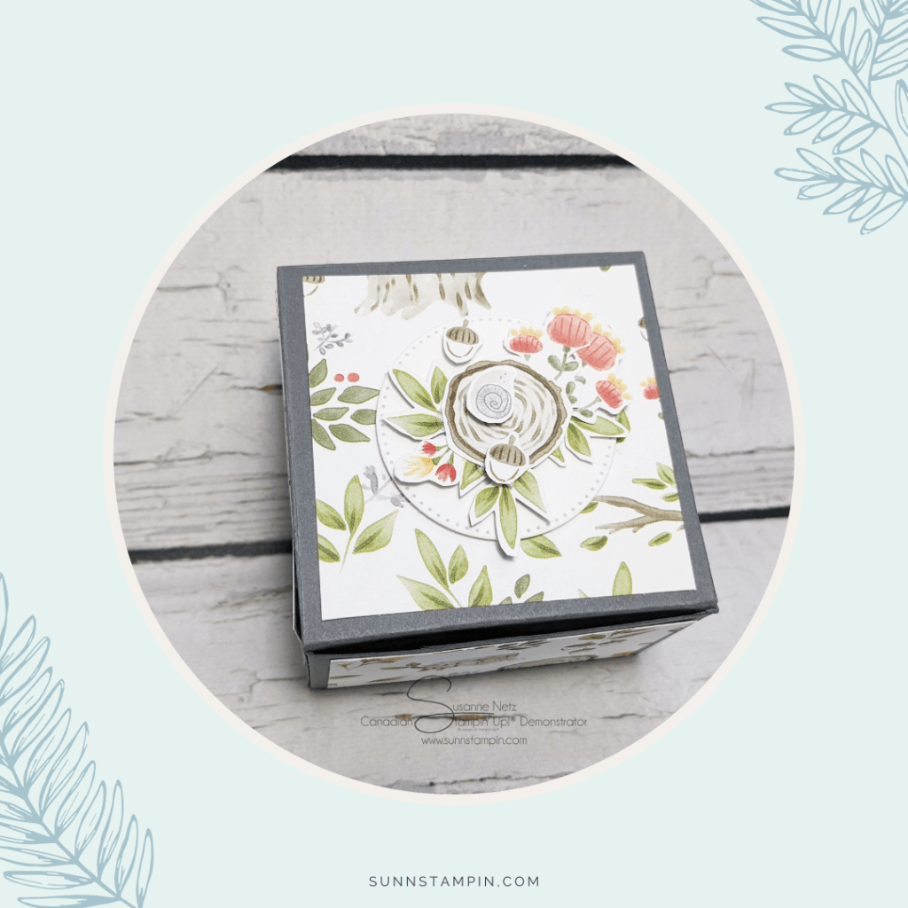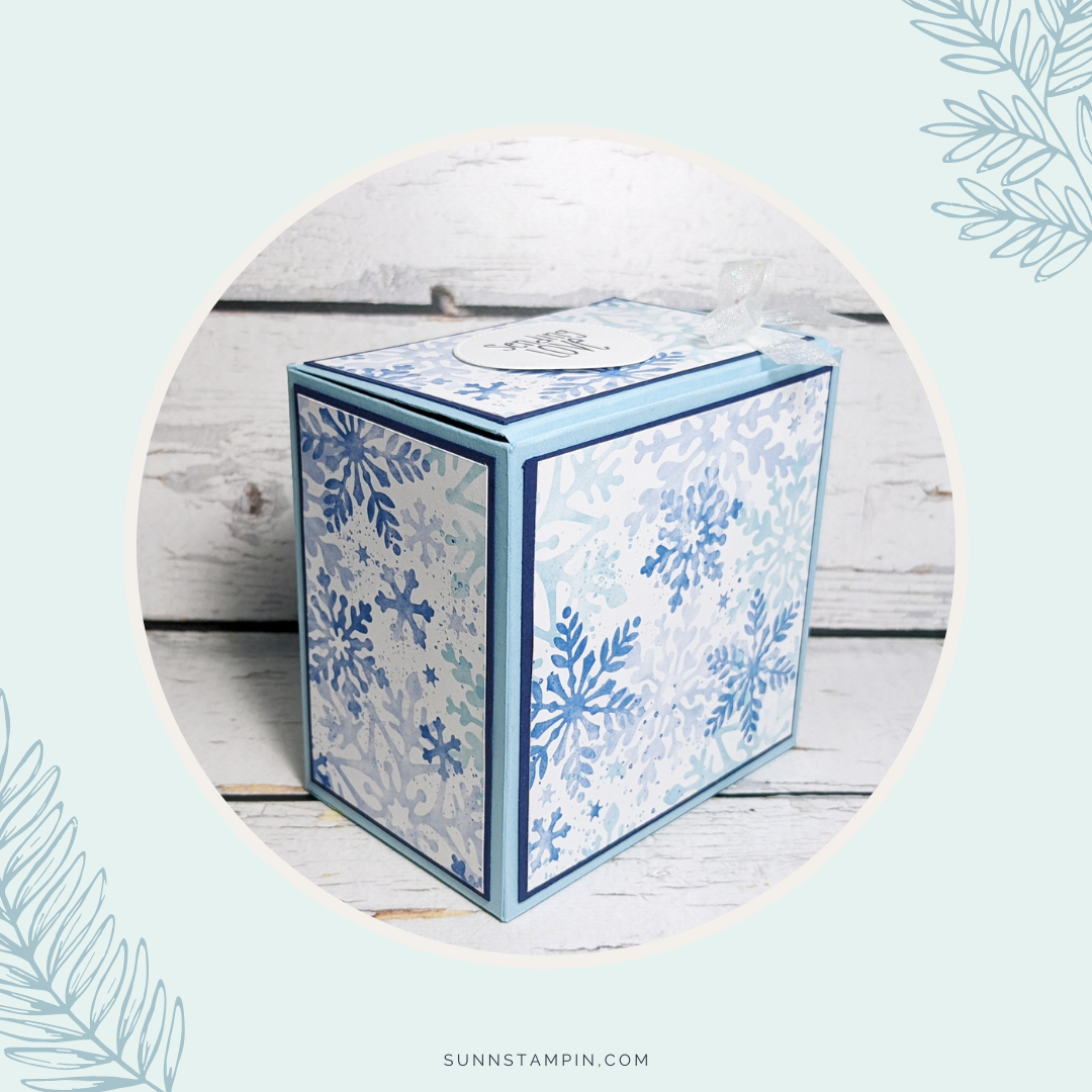 Hello friends. For today’s project I am using a patterned paper called A Walk in the Forest. It’s so wintery but not overly Christmasy! I love designing with things that can last the season. How about you? The box build today is so very simple if you have any question, shoot me an email.