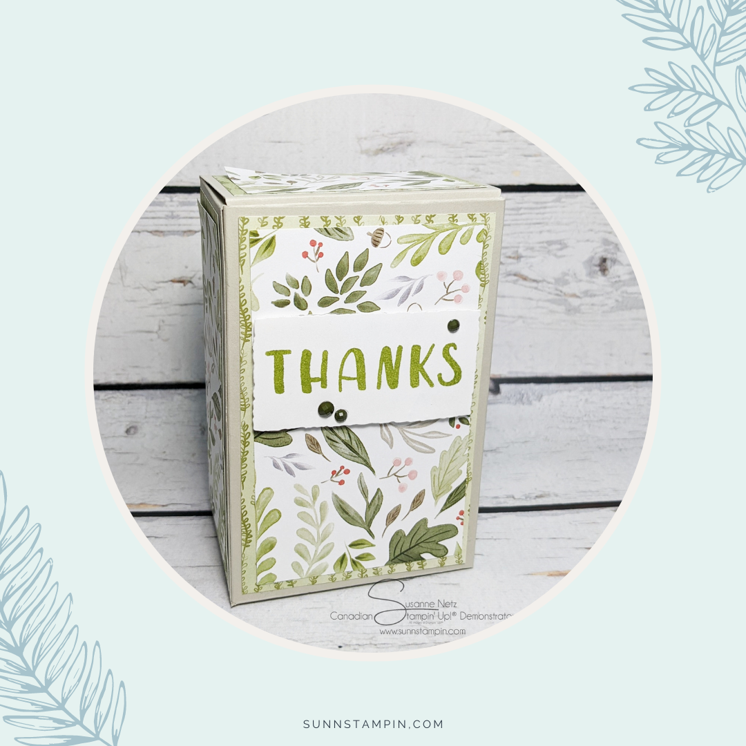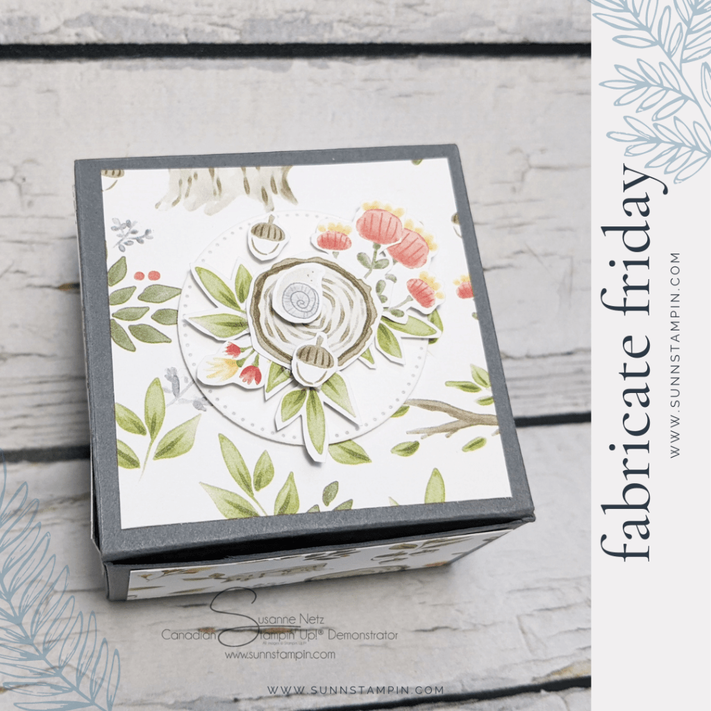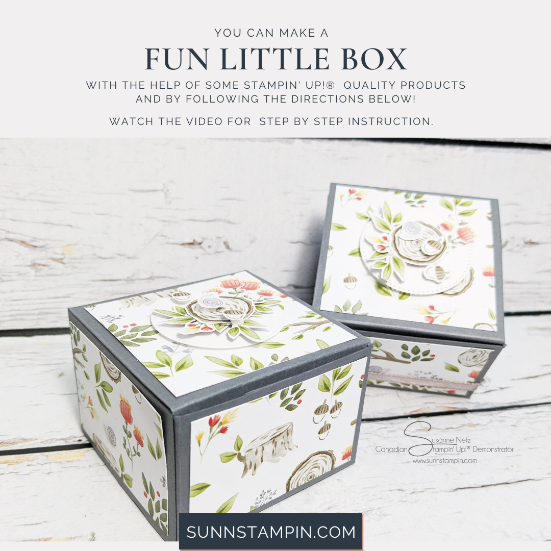 Hello friends. For today’s project I am using a patterned paper called A Walk in the Forest. It’s so wintery but not overly Christmasy! I love designing with things that can last the season. How about you? The box build today is so very simple if you have any question, shoot me an email.