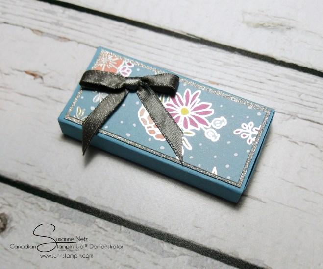 Hiya, how’s it going? I have a super cute box to share with you. I love little tiny boxes. I do not have a load of time to chat here today. I can quickly remind you a few things though. I will be doing a Facebook Live session this afternoon as I will pick the lucky winner who gets to shop on me this month. I would love to see you all there. I will give you a 30 minute warning. I am thinking it will be about 4pm pt. Next up is the very last day of my online classes (Blended Seasons & Painted Glass). I will have new classes from the Holiday Catalogue all next month so don’t feel that I will be leaving you high and dry. Also, I am doing product shares from our Holiday Catalogue and I still have some spots open. I would love to see you get some product at a lower cost so please act now and register for the shares. I take PayPal or e transfer for the payment but it has to be in to be before Sept 3. No longer. I have to put the order in right on the 5th of September. I will not do another one from this catalogue so please take advantage of them now.